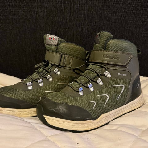 Viking barnesko størrelse 37 i sort farge. Skoene har borrelås og lisser for justerbar passform. Materialet er slitesterkt og egnet for utendørs bruk.