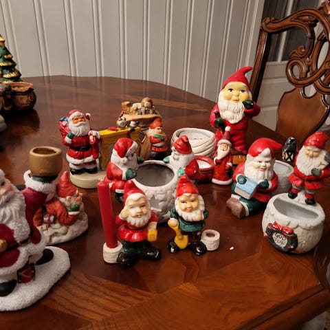 Nissekone av dukkemakersken Rønnaug Pettersen. Står på egenhånd, er pen i tøyet, ingen skader eller hull på det, men liten avskalling på nesen, se nærbilde. Høyde ca 21 cm. Utrolig sjarmerende