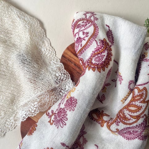 Fin italiensk topp i silkeblend med blonder og broderier