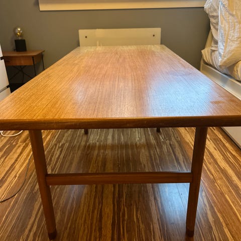 Lite fint teakbord selges! Har noen merker på overflaten som jeg selv tenkte å pusse og fikse, men ikke fikk meg selv til å gjøre.. så mulig å få fint igjen altså!😊