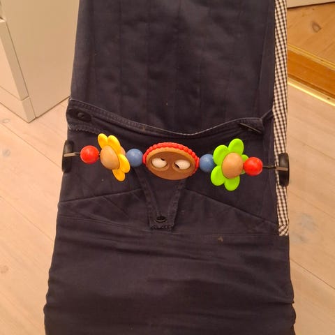 Ryggen kan stilles opp og ned. Har også praktiske bærehåndtak for enkelt å flytte rundt.