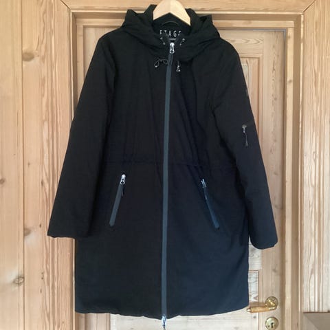 Pent sort vinterjakke selges da den er blitt for stor.