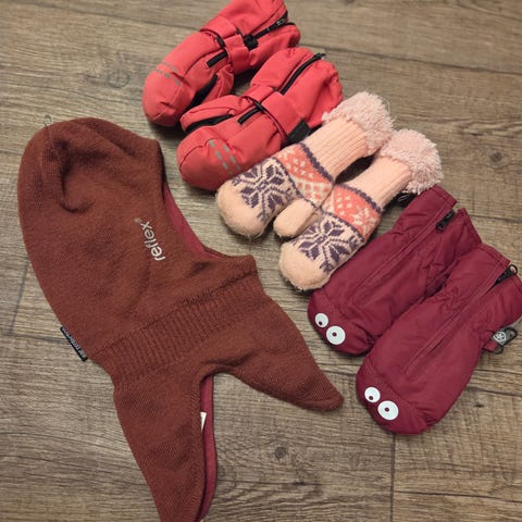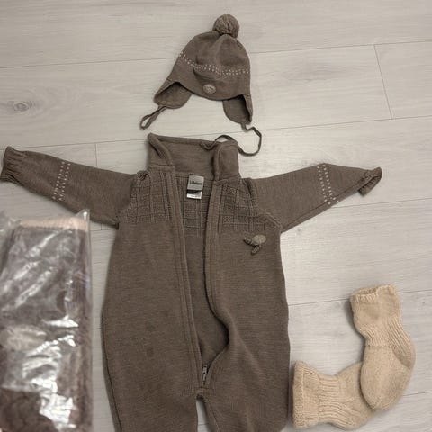 Deilig og myk balaclava og votter til baby i 100% merinoull selges. Aldri brukt da jeg ikke rakk å bruke det. Har kun tatt av lappen. Lua er i str 0-6 mnd, og har reflex på ørene, mens vottene er i str 0-1 år 😊