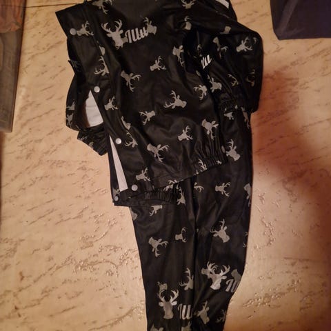 Pent brukt regntøy med fleece fôr inni. Perfekt til regndager på vinter og høst. Str122 / 7 år