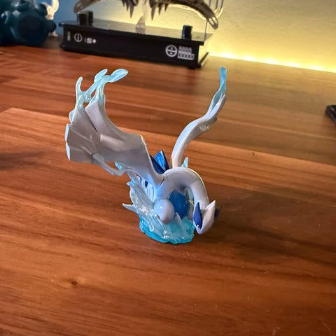 Pokémon Gyarados figur. Den har en liten knekk på ene siden. (Har lagt ved bilde) Leveres med plaststativ som holder figuren oppreist.