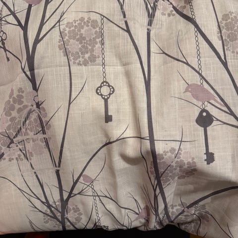 Pent brukte lystette gardiner til barnerom. Uten bruksmerker eller flekker. Kjøpt på princess-butikken. Lyse blå, med stjerner. To lengder selges samles for 300,-.