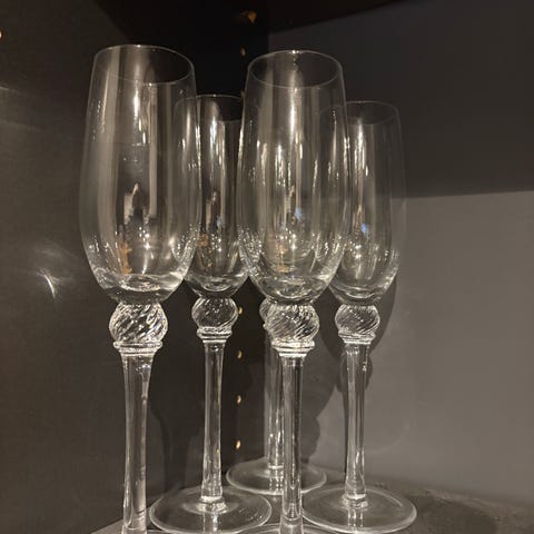Klassiske glass i serie Bristol Biri, design Kari Ulleberg. Feilfrie. Disse finnes i Nasjonalmuseet, produsert Hadeland Glassverk i perioden 1991-2001. Selges 100 kr pr stk, samlepris 500 kr.