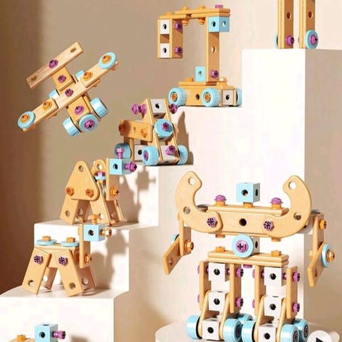 La barna lære gjennom lek! Dette flotte verktøysettet i tre gir barnet mulighet til å skru, hamre og bygge – akkurat som de voksne. Perfekt for utvikling av motorikk, konsentrasjon og kreativitet.