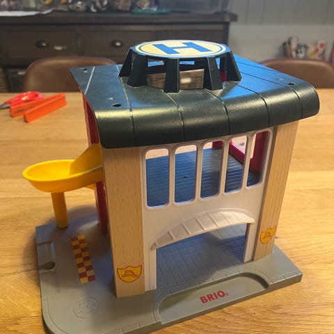 BRIO Rescue Firefighting Train barn leketøy med rødt design og flere tilkoblede vogner. Passer for barn fra 3 år og oppover. Laget av holdbare materialer egnet for lek.