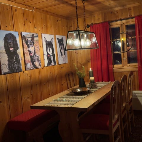Krogenes møbelsett med skap, seksjon, lysekrone, vegglampe og spisebord