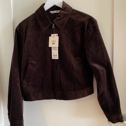 Uniqlo Andre jakker i oransje farge, laget av kordfløyel. Jakken er i størrelse M for damer.