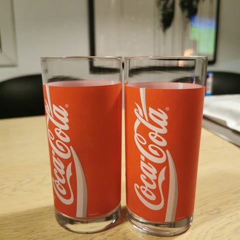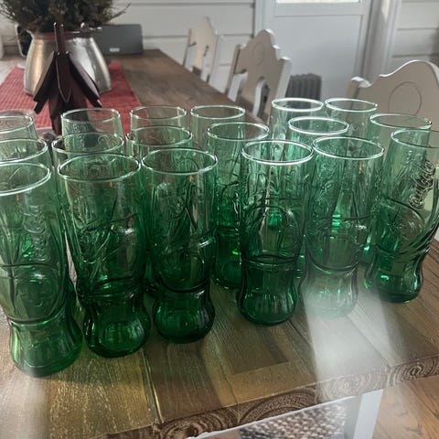 Selger fire pent brukte Coca Cola glass, uten sprekker eller skår.