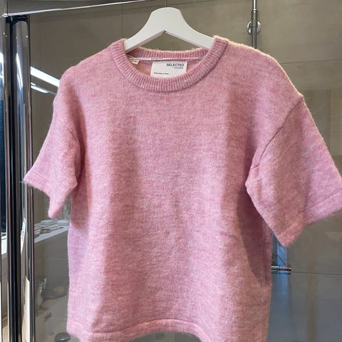 Fin lys rosa ullvest. Fin over noe annet eller alene. Inneholder både ull og alpakka.
