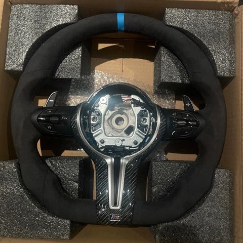 Hei, Jeg selger et nytt BMW M-look ratt med multifunksjonsknapper og paddleshiftere. Rattet har svart midtstoll og svart stitching, som gir et clean og sporty uttrykk i bilen, som dere ser på andre bilde😅 Det er identisk ratt montert i kompisens E90