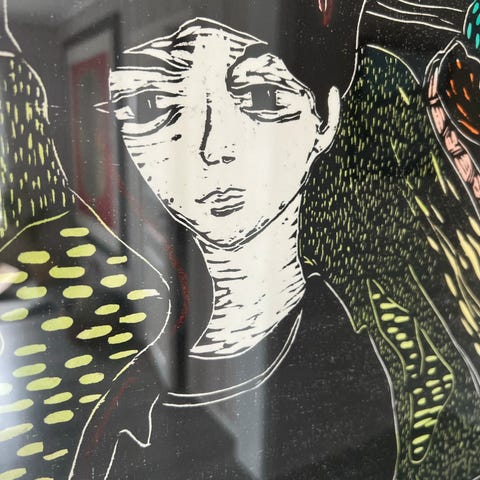 Tresnitt av Arnold Johansen, selges kr 8000 eller gi bud!! Dette er ett stort tresnitt ca 90 cm bredde, 120 cm høyde