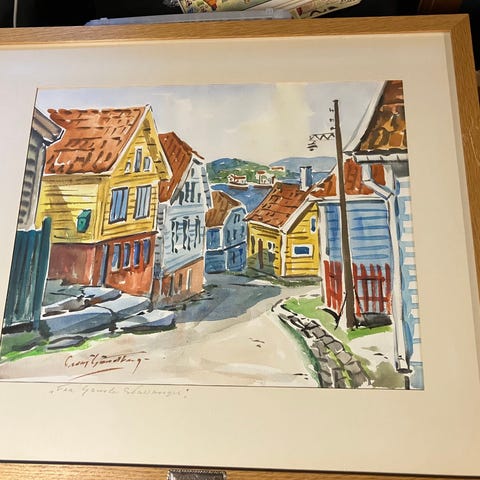 3 stk svart hvitt tegninger fra Stavanger 1986 - innrammet