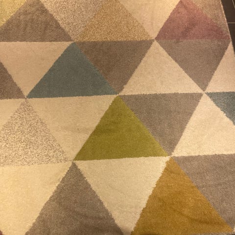 Asymmetrisk gulvteppe . Passet ikke som tenkt . Må hentes