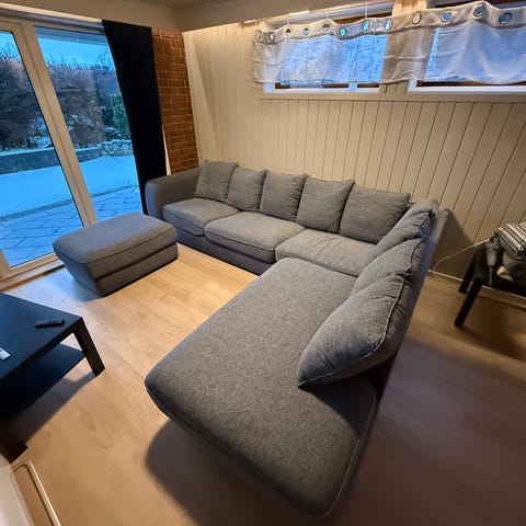 Dette er en modulsofa, når jeg kjøpte ble den bygd med puff på enden for å få en åpen ende.