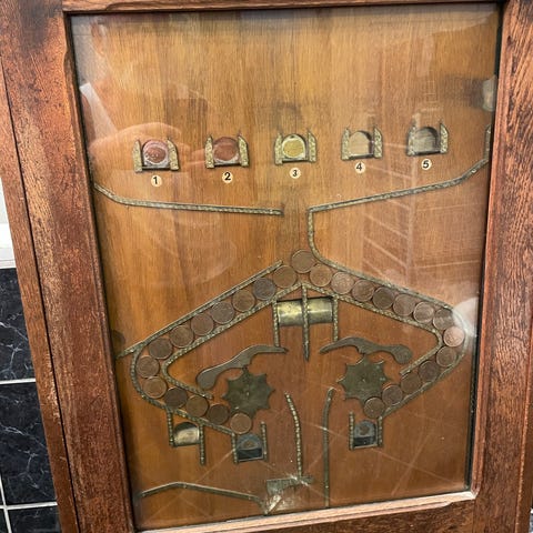 Klenodie fra verdens eldste forlystelsespark. Knipsekasse produsert av Dewag Hannover. Denne kassen hang på Den Gyldne Hal, en av de mange restaurantene som befant seg på Dyrehavsbakken. Jeg kjøpte den for mange år siden, av arvingen til han som drev restauranten. Inni er det stemplet av politimester i Hvidovre Kjøbenhavn.