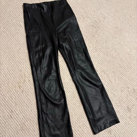 Zara bukser i skinnmateriale, svart farge, størrelse S for kvinner.