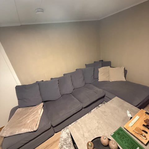 Dette er en modulsofa, når jeg kjøpte ble den bygd med puff på enden for å få en åpen ende.