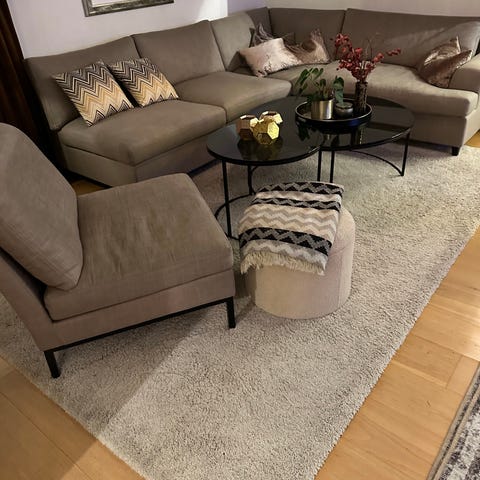 Selger 2 st mørkeblå tepper fra IKEA. Størrelse 160x230. Er brukt som et stort teppe, da den lange luggen gjør at du ikke ser skjøten. Pent brukt. Utgått modell, men lignende type som https://www.ikea.com/no/no/p/vollerslev-teppe-lang-lugg-hvit-60492542/