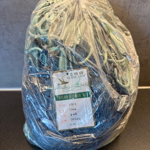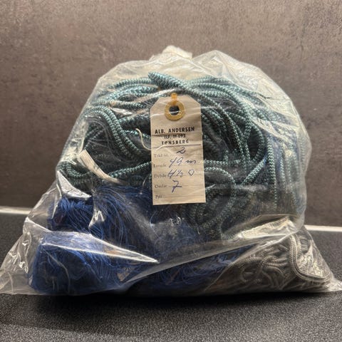 Nye toggegarn til salgs ! Veldig bra etter torsk men også andre arter. Multimono garn i 1,5x4 ( sen )x65 mm halvmaske ( 9,5 omfar ) med store masker på begge sider av garnet. Lengde 45 m i flytetennel, 50 m i bunntennel og 1,4 meter høyt. Pris 1140 kr eks mva ( kr 1428 inkl mva ). Sender over hele landet.