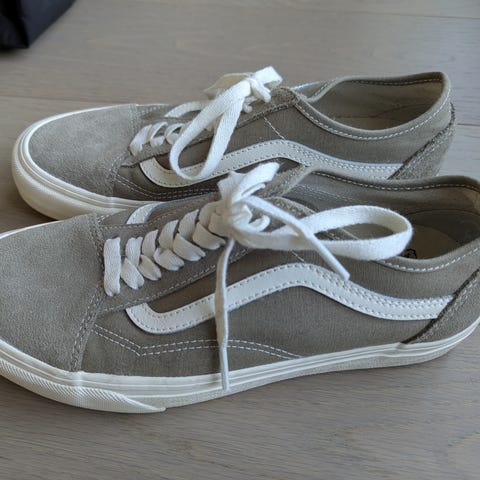 Selger disse freshe og behagelige Vans-skoene da jeg kjøpte de en 1/2 str for liten. Derav er de også brukt minimalt og vil si de fremstår som nye (bare noen små svarte merker på den hvite sålen + en liten del av Vans-merket er slitt bort på innersålene).