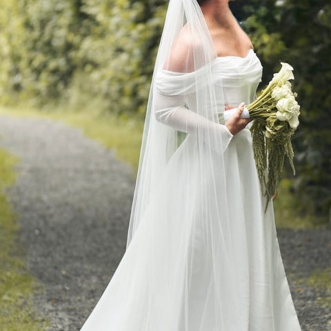 Brudeslør med blonder fra JJ House. Kun prøvd på. Lengde 300cm, hvit farge