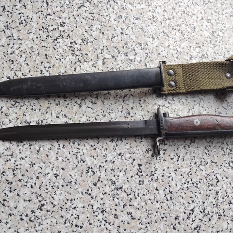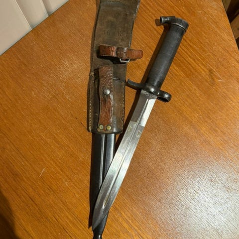 Sveitsisk bayonet med knukket tupp.