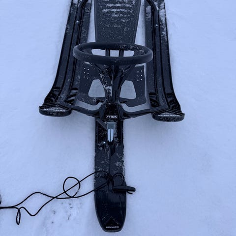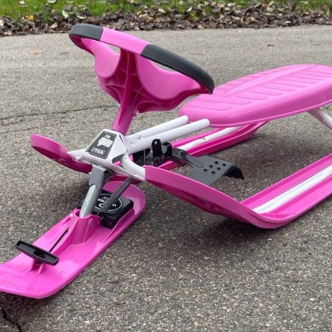 Stiga Snowracer barn akebrett i rosa farge. Designet for barn og laget for å gi stabilitet og kontroll i snøen.