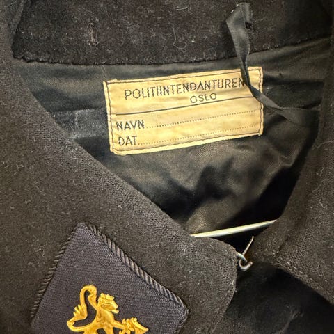 Selger en svensk sekk fra polititroppene, merket bakpå, og noe skrevet på reimene. En av reimene har røket, men har den liggende.