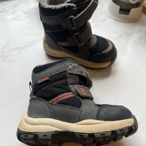 Skoene er vanntette (WP), varme og supergode til vinterbruk for små føtter. Perfekt til barnehage og aktivitet ute. Selges da føttene vokste for fort 😅