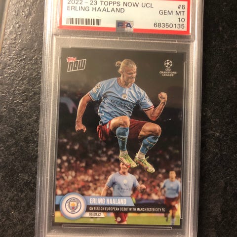 Originalt signert fotballkort XL størrelse, med penn/tusj og registrert med PSA nummer. Fra tiden Erling Haaland spilte for Borussia Dortmund