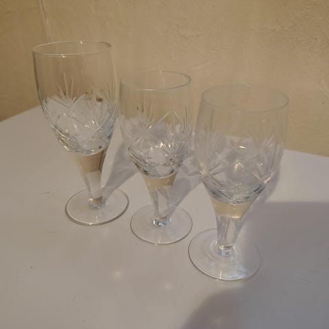 Flotte Finn krystallglass fra Hadeland. Hele og pene, kan sendes med Postnord for kr 69,- eller 129, avhengig av volum og vekt. Se liste for størrelse og pris: