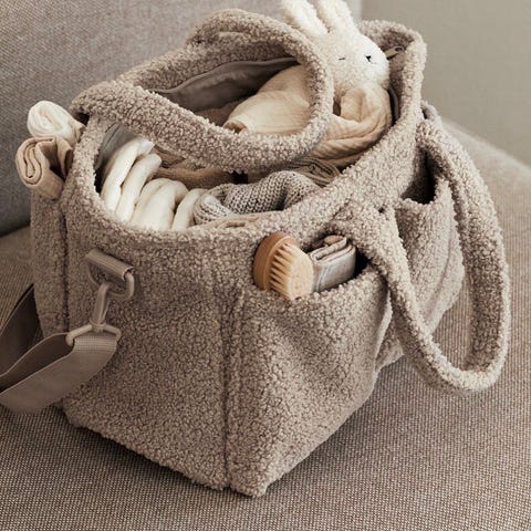 Vesken har flere rom for organisering av babyartikler som bleier, flasker og klær. Utstyrt med to håndtak for enkel bæring. Passer til oppbevaring og transport av nødvendigheter til babyen.