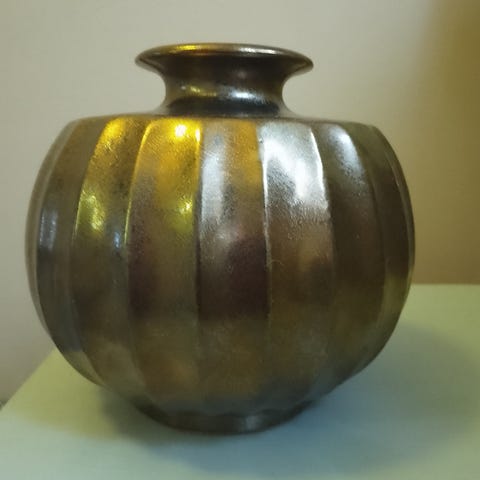 Vakker retro vase i grønn porselen med dekor. Må hentes på Lilleaker.