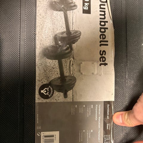 Masse mer 1, 2, 3 og 4kgs dummbells i kassen samt med pins man kan bruke for å henge opp vekter. En medisinball og noen småe vektskiver. Dette selges mye billigere.