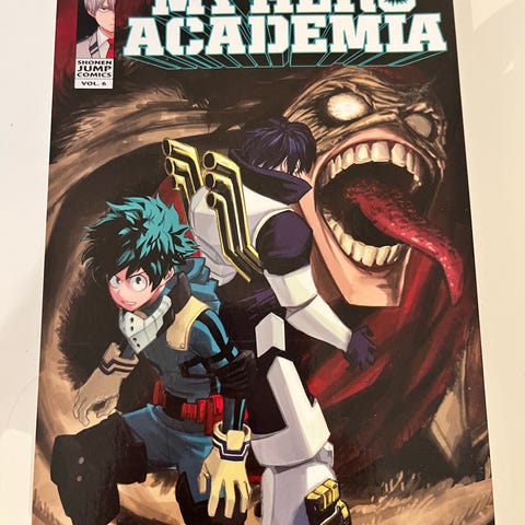 My Hero Academia manga av Kohei Horikoshi. Serien følger en verden hvor superkrefter er vanlige, og hovedpersonen streber etter å bli en helt. Passer for lesere som er interessert i action og superhelt-tema.