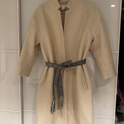 Kåpe selges. Merke: Loft fashion. Str:36. Fuskepels. Bunnfarge svart med beige tweedfarger