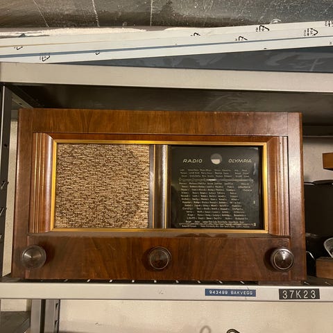 Gammel retro radio med veske.