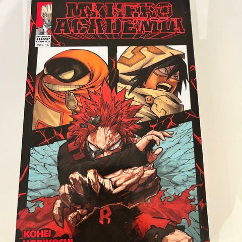 My Hero Academia tegneserie med illustrasjoner av Kohei Horikoshi. Serien er en del av manga- og tegneserieformatet.