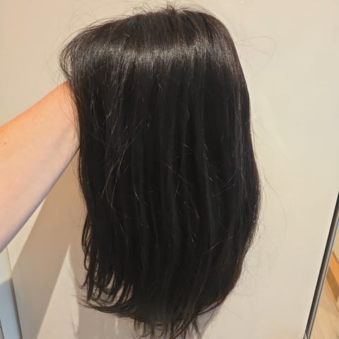 Nydelig topper med fire klemmer. Veldig enkel å feste. Kunsthåret ser veldig ekte ut og føles mykt. Dessverre kommer krøllene mine stadig til syne under, så jeg har valgt en annen hårdel. 😃