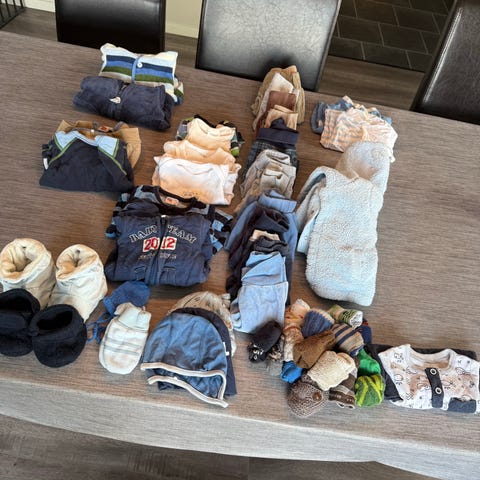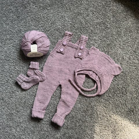 Selger nydelig strikkesett i merinoull, blå 0-3 mnd 400kr hvite 3-6 mnd 500kr lue 0-4 mnd 150kr hentes eller sendes mot porto.