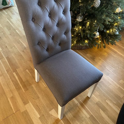To mørkegrønne stoler selges samlet. Sittehøyde er 47 cm. Må hentes