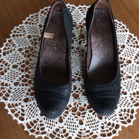 Neosens pensko i størrelse 39. Skoene har snøring og er laget i skinn med dekorative detaljer. Sålen har mønster og er merket med 'Made in Spain'.