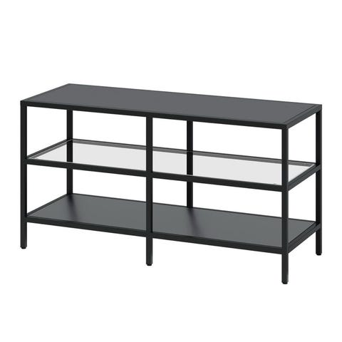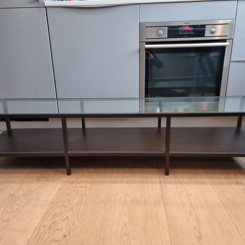 TV-benk i glass og sort metall på 150 cm, som ny.