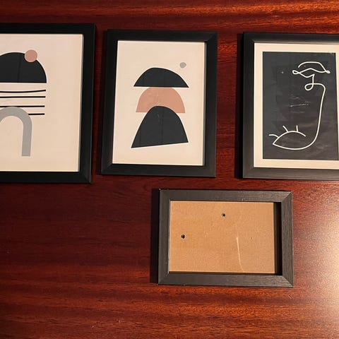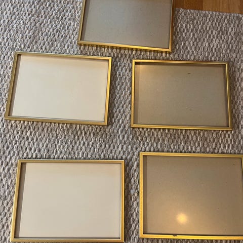 4 stk bildeholdere i ulik størrelse. Glass foran og bakside av MDF eller lignende materiale. Passer til ulike typer bilder eller plakater. Selges samlet for 150, eller hver for seg til angitt pris.