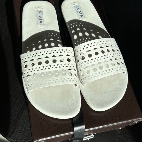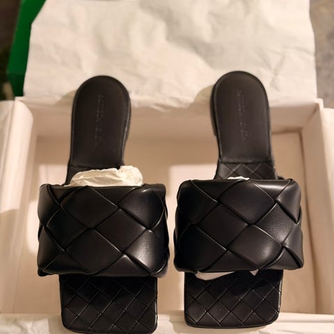 Rosie Crystal Slingbacks fra Amina Muaddi, kjøpt hos Vinnci i Oslo. Brukt kun ved to anledninger. Det er lagt inn ekstra såle hos skomaker for økt komfort og beskyttelse, og strikken bak er justert for bedre feste.