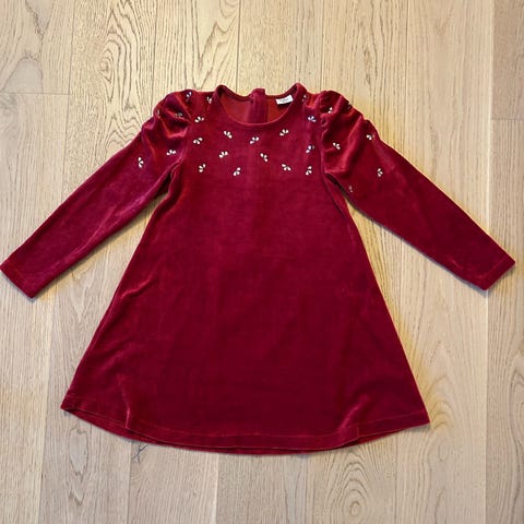 Brukt kanskje en gang. Pen kjole med røde hjerter. Kunne passe fint til Jul 😀